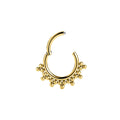 The exquisite Beaded Detail Clicker is the perfect statement piece for your septum or daith piercing! Stunning stacks of polished Silver or Gold Plated Titanium beads intricately designed to add sophistication and charm to your look.
