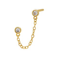 Delicate yet eye-catching, Lustre Link Stud earring features two bezel-set gems connected by a fine gold-toned chain, offering a balance of shimmer and edge. Designed for double lobe piercings, it drapes elegantly along the ear for a layered, modern look without the need to stack multiple pieces. Lightweight and full of subtle sparkle, it's the perfect way to add a unique twist to your everyday rotation or an elevated accent to a curated ear.
