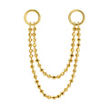 Elevate your ear stack with the Double Beaded Drape Chain, designed to connect double piercings with ease and elegance. Featuring two delicate rows of golden beaded chain, it drapes gracefully across the lobe to add texture, movement, and a subtle shimmer. Lightweight and endlessly versatile, this charm shines whether styled as a solo accent or layered into a bolder curation—bringing a refined edge to any look.