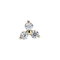 The 14k Trinity Cluster is a new addition to our Solid Gold Collection. Three finely cut stones set into a triangular 14k Gold setting, this piece is available in an Iridescent White Opal or a Pristine Premium Zirconia. Perfectly sized for a dainty cartilage or stacked lobe piercing.