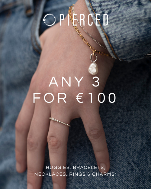 Choose from huggies, charms, rings, bracelets & necklaces. Any 3 for ONLY €100. Christmas gifting has never been so easy!